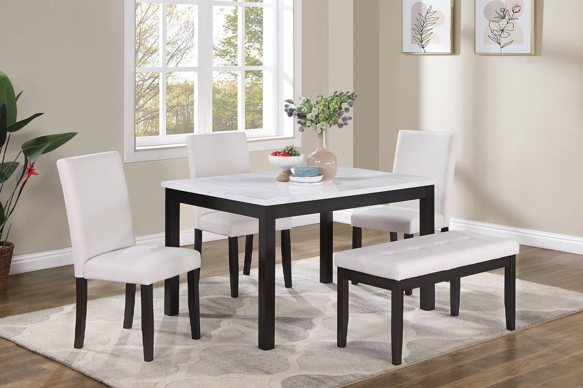 -Faux Marble Top, PB, Rubberwood Faux Leather Upholstery